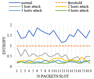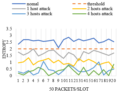Threshold $=\frac{\text { Min.Normal entropy }+ \text { Max.attack entropy }}{2}$ (3)
