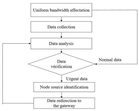Our proposed system operates in three phases: collecting health care data, selecting critical and urgent data, and forwarding the critical and urgent data to the gateway to ensure the required QoS, taking into account parameters such as high throughput and low latency. In Figure 4, we draw a flow chart of our proposal.