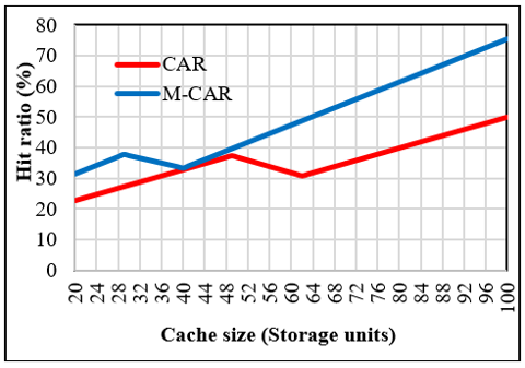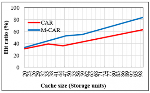 The criteria used to judge the performance efficiency in the proposed algorithm is the hit ratio gained by (M-CAR) and original (CAR), because cache memory was basically invented to solve the wait-state problem by keeping a useful data block to achieve the highest reachable hit ratio.