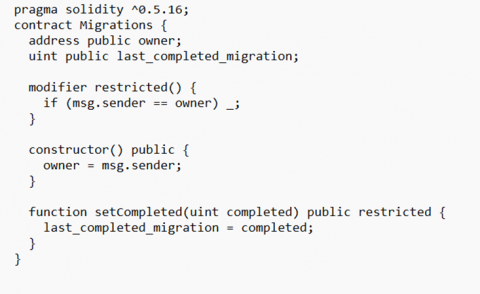 The smart contract (Figure 2) provided, "Migrations," is a utility contract used in the deployment process of Ethereum-based smart contracts, often with tools like Truffle running on them while deployed by a contract transaction. The contract keeps track of the number and location in each deployment of the contract migrations step, so any deployment step happens only once. Other Properties The contract gives the address responsible for creating and owning the contract. This role allows certain functions throughout the contract via a protective modifier. When the last_completed_migration variable is updated by this function and qualified by a protected modifier, this reflects that a particular migration has been completed. This avoids duplicate or erroneous migrations when the transactions involved in contract upgrades are posted and blow their precompile limit. In practice, this works as follows: When called, setLastCompletedMigration stores 'step_nr ' in century at spotstep_for (centuries); Elsewhere, since step_nr has been completed, "step_nr" ' in new century is preserved, which provides information about how many generations were sent before it indexed below either hint or correspondingly for wast lists. This avoids re-deploying or repeating the migration steps altogether by performing with external pure calls during the stage of business, prevents contract updates, and re-deployments reliance on placed code is more.