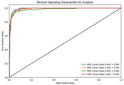 InceptionV3: This architecture [23] processes multi-scale features through parallel convolutional pathways. Optimized for efficiency, its hybrid filter approach provides robust pattern recognition for MRI data with reduced computational overhead.