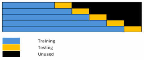 For each window in each window shift scenario, anomaly detection using the distributed lag method begins by estimating parameters on the training data. The parameter estimation results in the training data are then used to forecast one period of testing data. These forecast results are then combined with training data and used again in the modelling process to predict the next period. This is done continuously until all test data in a window has forecast results based on the predetermined model.