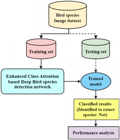 Images, audio, or video may usually be employed for bird identification. Unfortunately, mixed sounds like insects and other real-world items in the frame make it difficult for the audio or video processing technique to properly detect birds [9, 10]. Therefore, most academics think that images are the efficient way than sound or video when trying to identify different kinds of birds [11]. Because it divides the gathered images into smaller groups within the bigger category, Fine-Grained Image Analysis (FGIA) plays a significant role in bird categorization [12]. To effectively identify bird species, image processing technologies are used to either enhance images or extract useful information from them [13]. The technique involves processing signals, with recorded bird images serving as the input and potentially producing an image or associated attributes as the output. The image processing approach determines the enhanced or fine-grained images features [14]. However, FGIA is still difficult since there is minimal variation across classes and a lot of variation within them. Automatic bird species detection might also greatly speed up identification task.