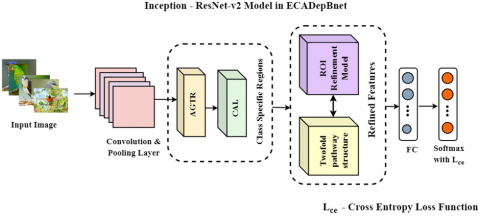This class- specific region (images) will be fed as input to the ECADepBnet to handle the small ROI of birds and image-intensity issues effectively. ECADepBnet is a dual-phase model that uses rough full images (sub-class regions) as input and outputs the refined features from classifiers which will be fed into FC layer of Inception-ResNet-v2 for bird species identification. Figure 2 presents the pipeline of ECADepBnet model for the different bird species prediction.