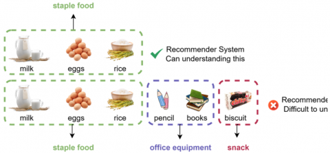 E-commerce purchases reflect multiple needs in a single transaction. For example, a user may purchase milk and eggs for daily needs, stationery for work, and snacks for family entertainment, all in one shopping cart. This demonstrates the phenomenon of multi-intent transactions [1, 2].