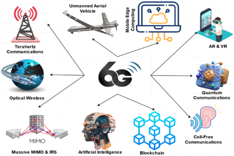 Blockchain ensures data security, transparency, and trust management between IoT and smart applications. At the application end, Quantum Communications safeguard the transmission at the physical level, and AR & VR deliver immersive experiences supported by high-bandwidth and low-latency [18]. Mobile Edge Computing (MEC) lowers the latency of computation and brings it closer to the end-user, and UAVs extend connectivity to distant locations. Together, these technologies form the basis of 6G-driven smart cities, IoT environments, and future-generation digital infrastructure [19].