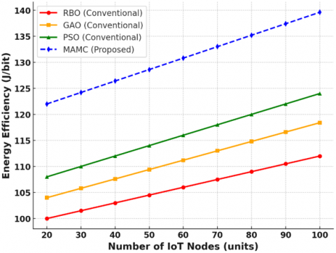 Lee et al. [15] proposed a distributed hybrid NOMA/OMA user allocation scheme for wireless IoT networks. It is a development of a distributed algorithm founded on a message-passing framework that tunes users between nonorthogonal multiple access (NOMA) and orthogonal multiple access (OMA) in a dynamical fashion, hence delivering spatial gains through beamforming while ensuring fairness and convergence toward a global solution. This kind of hybrid solution always obtains superior performance than existing solutions in massive connection scenarios. Its drawback is that its real implementation in dense networks would be prone to synchronization overheads and additional signaling costs, thus reducing efficiency under extremely dynamical conditions. From the above studies, it is observed that existing 6G IoT optimization approaches often suffer from single-model dependency, high computational complexity, limited adaptability under dynamic traffic conditions, and isolated optimization of latency, energy, or throughput. Furthermore, many solutions rely on fixed optimization strategies or centralized learning, which restrict scalability and real-time deployment. Motivated by these limitations, the proposed MAMC framework is designed to dynamically select the most suitable learning model and jointly optimize configuration parameters such as TTI, RB, MCS, transmit power, IRS phase, and edge offloading. Unlike prior works, MAMC explicitly integrates model adaptability, multi-objective optimization, and online learning into a unified decision-making framework, as detailed in the following section.