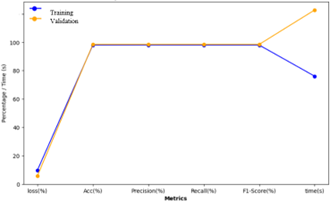 Figure 12 presents a comparison of the metrics obtained during the training and validation phases, depicting the model's stability and effectiveness in both stages.