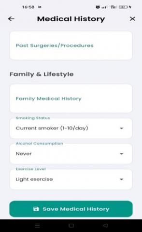 Figure 11. Medical history screen