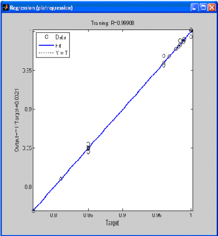 The training, regression and performance charts (Error Chart) are given in Figure 8 to Figure 10. Figure 11 shows the comparison between the actual and the calculated value.