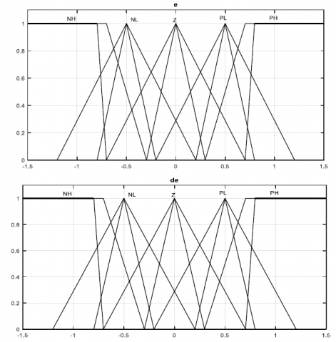 We use the two inputs fuzzy sets (e and de) are composed of five membership functions [8, 26] are defined in (Figure 10).