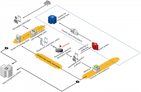 The computing layer calculates and mines massive historical data through streaming computing under distributed memory architecture. A customized algorithm library is employed to recommend prescriptions that befit the insomnia symptoms, and empower collaborative treatment of intractable diseases. The knowledge base is enriched through knowledge consolidation. Meanwhile, a general machine learning library is used to deeply mine historical cases, and standardize electrical stimulation prescriptions.