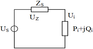 $\overset{.}{\mathop{{{\text{U}}_{s}}}}\,={{\overset{.}{\mathop{U}}\,}_{i}}+\frac{{{P}_{i}}-j{{Q}_{i}}}{{{\overset{.}{\mathop{U}}\,}_{i}}}{{Z}_{s}}$ (6)
