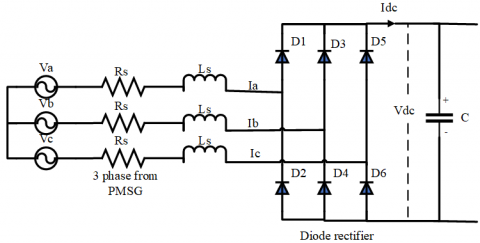 Figure 5. Three phase rectifier circuit connected to a 3 phase generator
