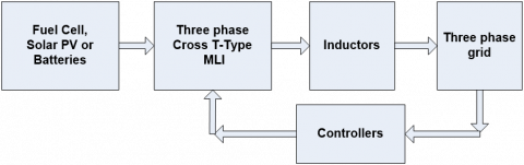 In the grid connected mode of the three phase CT-Type MLI (Figure 7), the inverter is connected to the grid through a proper controller. The controller ensures synchronisation between the grid and the MLI. Also, the THD content of the injected current is maintained within the prescribed limits.