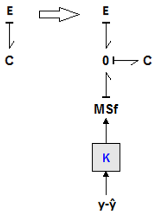 In Figure 6, the integration of the term $L(Y-\check{Y})$ into the dynamic element C, using the modulated effort source MSe, is made. The idea is to have a BG model corresponding to the observer equation in Eq. (32).