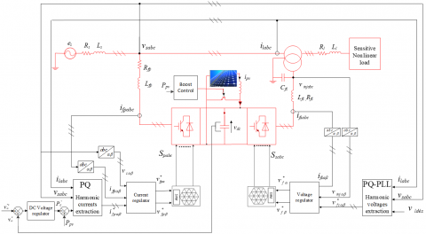The instantaneous PQ theory for currents and PQ-PLL for voltages are used to establish the harmonic references [18, 19]. Compensation goals include voltage and current harmonics mitigation, reactive power compensation and DC bus regulation during the bidirectional active power exchange between the PV generator, two active filters and power system grid. A detailed analysis of the different components of PVG-UPQC is presented hereafter.