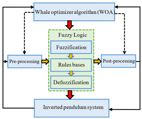 Other proliferating areas that can alleviate the main drawbacks of FLC is meta-heuristic schema. Meta-heuristic is an optimization technique, which seeks for a best or near optimal variable (minimum for minimization problem or maximum for maximization problem) within, given search space and many approaches have been proposed. Whale optimizer algorithm (WOA) is a recent met-heuristic method inspired from a social behavior of humpback whale, which mimics their hunting mechanism (bubble-net). This algorithm is able to handle functions with several local minima in height dimensional space, moreover it provides height accuracy and fast convergence.