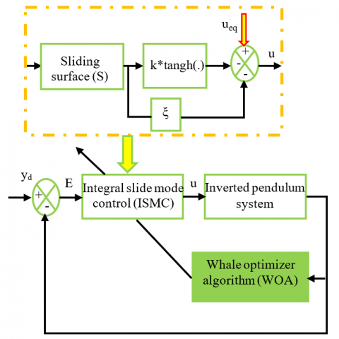 The rest of the paper is organized as follows. Section 2 provide the related work. In Section 3 gives main model of the inverted pendulum. The proposed meta-heuristic algorithm is explained in Section 4 and its subsections. The RBF based neural network and ISMC controller are both explained in Section 5 and 6. Section 7 presents the main parameters of the WOA used to find the near optimal parameters of the applied control strategies. Finally, in Sections 8 and 9 results and conclusions are explained respectively.