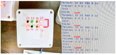 Figure 14. Level sensor value 10cm and turn on LEDS (D2&D3)