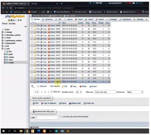 In the proposed system, each edge server is represented by a computer on which an XAMPP is installed. The data reading sensors value coming from the factory, it stored in the database tables of the edge servers. These tables are accessed by making a request to the PHP page of each server. The link is configured to call PHP for each server to add the value of the sensors to the MySQL database table in each server. The sensor values are sent via Raspberry Pi, where they are stored in the table. The database consists of a column for each sensor value, with an id for each row of values, as shown in Figure 3.