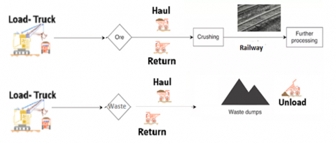 The Shovel-Truck (ST) load-and-carry system is a common practice in surface mining [6-9].
