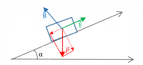 $\sum$ Forces $=\mathrm{Km} \vec{\gamma}$, so $\overrightarrow{\mathrm{F}}+\overrightarrow{\mathrm{P}}+\overrightarrow{\mathrm{R}}=\mathrm{km} \vec{\gamma}$ (3)