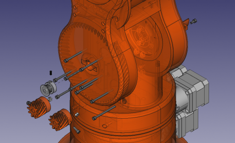 The mechanical components were designed based on the modification of an open-source, six-degree-of-freedom Thor Robot, which was released in 2017 [12]. Since then, the model has undergone many modifications, adaptations, and applications by numerous researchers worldwide and more than 20 units have been built in at least 11 different countries [13-19]. FreeCAD, an open-source 3D modeling software was used to model the robotic arm. Thor robotic arm model was modified by scaling down the number of links and degree of freedom for simplicity and cost reduction but maintaining the functionality of the robotic arm. The developed model has a 4 degree of freedom with a 2-fingered gripper for grasping.