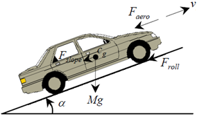 $F=F_{\text {gravity }}+F_{\text {aerod }}+F_{\text {rolling }}+M \frac{d V_{E V}}{d t}$ (1)