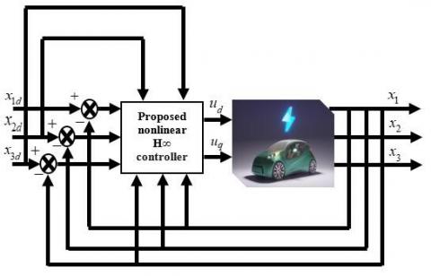electric vehicle, permanent magnet synchronous motor, linear H-Infinity control, Algebraic Riccati equation, nonlinear H-Infinity control, Hamilton-Jacobi-Isaacs equation, the Galerkin approximation approach