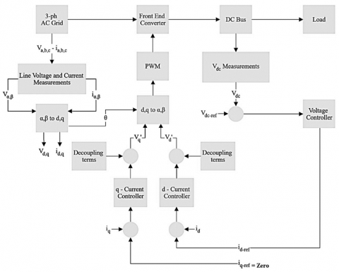 Figure 5 shows the block diagram of the proposed vector control used for FEC [34, 35]. A standard proportional-integral (PI) controller is used to run the converter in a closed-loop system. The least overshot, minimum settling time and minimal steady-state error requirements are met by PI current controllers in the d-q axis when they are developed and analyzed.