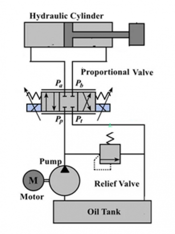 Figure 1. Simple basic hydraulic circuit of directional proportional control valve with cylinder
