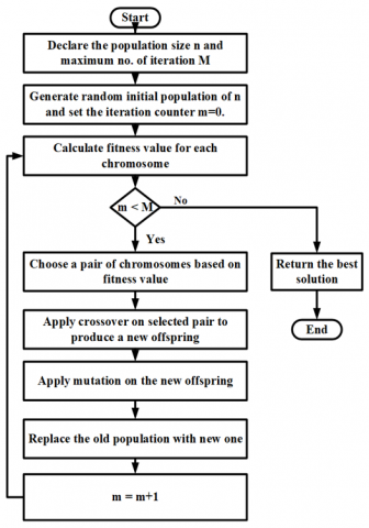 Genetic algorithm is one of the optimization algorithms that relies on a random global search method which simulates the evolution of natural inheritance based on the concept of survival of the fittest. The flowchart of the genetic algorithm behavior is explained as shown in Figure 3 [39].