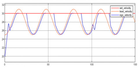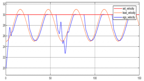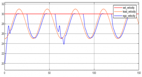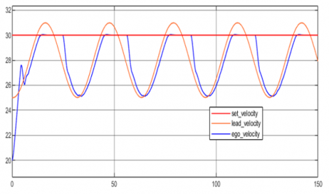 The proposed controller still operates in distance control when the driver set speed is greater than speed of lead vehicle. It can be notice from fig, that the distance between host and lead vehicle reach the desired distance with host vehicle speed converges to the desired velocity set be the ACC system which equal to the deriver set velocity in speed control mode and lead vehicle speed in speed control while the desired velocity in distance control mode is equal to velocity of lead vehicle.
