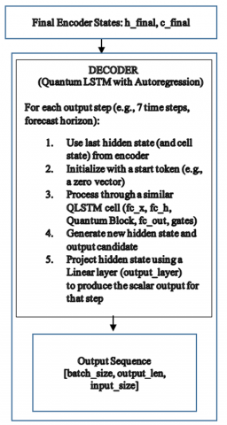 The Quantum Layer is the core of the framework, where the Quantum Encoder Decoder LSTM (QLSTM) model is defined, trained, and used for energy prediction. The QLSTM model combines the temporal modeling capabilities of classical LSTMs with the computational advantages of quantum computing, enabling more efficient and accurate energy optimization.