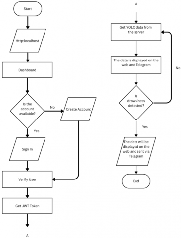 The data collected is then checked by the system to determine if the driver is experiencing drowsiness. If drowsiness is detected, an alert will be immediately displayed on the web and sent to the driver via Telegram. If it is not detected, the system will return to the previous step or wait for new input to be processed. Once this process is complete, the user will receive feedback on the driver's status and can take the necessary actions to ensure the driver's safety on the road [17].