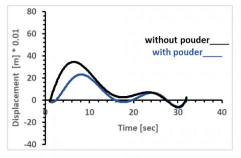 Figure 9. Relationship between displacement and time with and without ferromagnetic powder