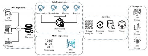 This research aims to explore the integration of artificial intelligence within a logistics warehouse to accurately predict production requirements. By focusing on the implementation of an ANN model, the study seeks to optimize inventory management by preventing both stockouts and overstock situations. The objective is to demonstrate how AI can be leveraged to anticipate demand fluctuations, enhance operational efficiency, and ultimately strengthen a company’s competitiveness in an increasingly demanding market.