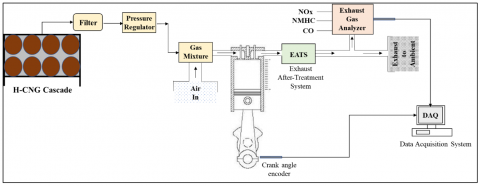 This engine was chosen because it’s well-suited for spark-ignition operation and can handle HCNG blends effectively, making it an ideal platform for studying the balance between performance and emissions in a controlled setting.