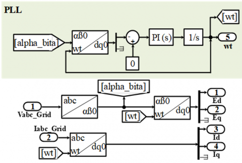 The control system consists of three control circuits based on the PI controller: PI1 is used to control the voltage of the intermediate circuit (Vdc) and PI 2, PI 3 are used for controlling the direct and quadratic currents (Id, Iq) generated by a three- or seven-level inverter.