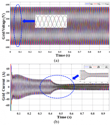 Simulations conducted in Matlab/Simulink show that the GWO-tuned FOPI is more accurate than the PSO and ABC-tuned FOPI control loops and that the GWO-tuned FOPI can improve inverter performance by improving THD. Majumder et al. [12] introduce a proportional-resonant (PR) controller for synchronizing a five-level cascaded H-bridge multilevel inverter (CHBMI) with the grid in a solar PV system. Unlike traditional PI controllers, the PR controller eliminates steady-state errors and coupled feedback terms, while also compensating for selective grid current harmonics. The proposed method demonstrates superior performance in grid synchronization and harmonic mitigation, offering a more effective solution for PV-grid integration.