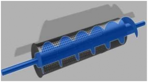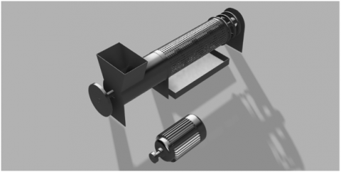 Figure 7. 3D modeling of the filtration system, highlighting the auger
