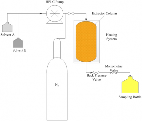 Figure 4. Schematic diagram of a semi-continuous high- pressure extraction system [20]