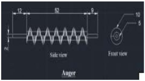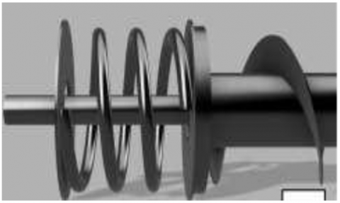 Auger Screw. The auger screw transports fruits from the hopper to the squeezing section, applying pressure to extract the juice It is the core of the extractor mechanism. The screw has a helical design for efficient fruit movement, is made from durable material to withstand pressure and torsional forces and features variable pitch for optimal juice extraction.