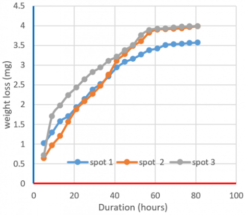 where, W = weight loss (gm), A = exposure area (m2), T = duration (hour).