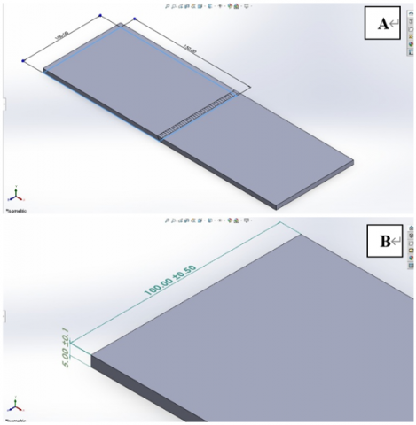Figure 1. Welding joint configuration and dimensions (a) Width and length and (b) Width and thickness