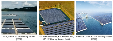 Figure 2. The first FPVS (Aichi, Japan), the first commercial FPVS (California, USA), and the world's largest FPVS (Huainan, China)