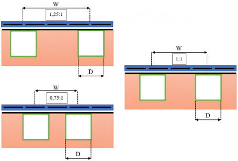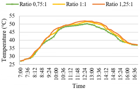Experimental parameters were maintained consistently to minimize error. These include: a constant PV panel type (50 Wp polycrystalline), with only a single panel used to avoid variability in panel performance; aluminum collector material with a thickness of 1 mm; a fixed evaporator length of 750 mm and condenser length of 1600 mm; measurement times between 07:00 and 16:00 WIB on clear days with a minimum ambient temperature of 27℃; and a fixed tilt angle of 12.5° facing north. The variations in W/D ratio are illustrated in Figure 6.