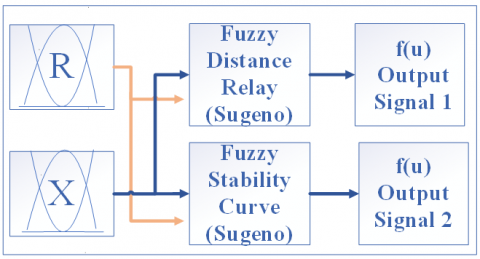 Figure 4. Fuzzy logic architecture for distance relay and stability limitation curve