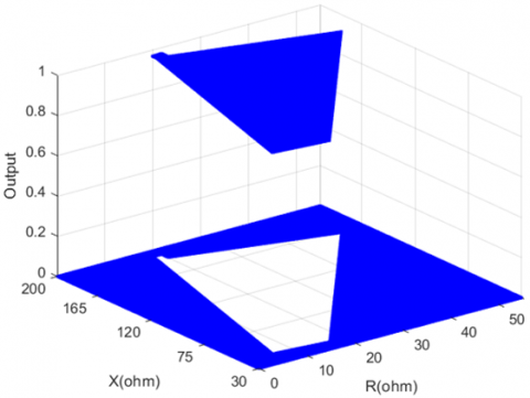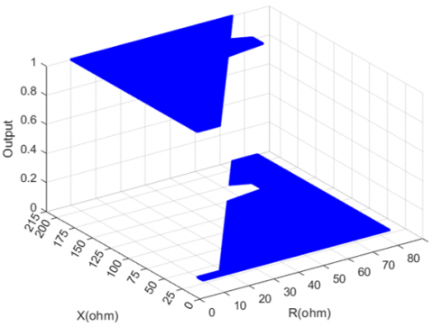 Figure 2. Impedance trajectory and distance relay characteristic with stability limitation